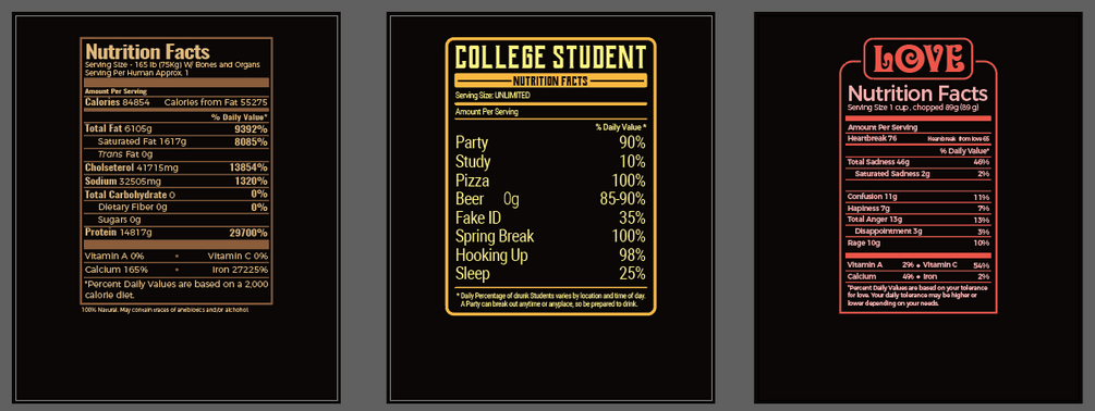 3 Nutrition Fact Label T-Shirt/Mug Templates